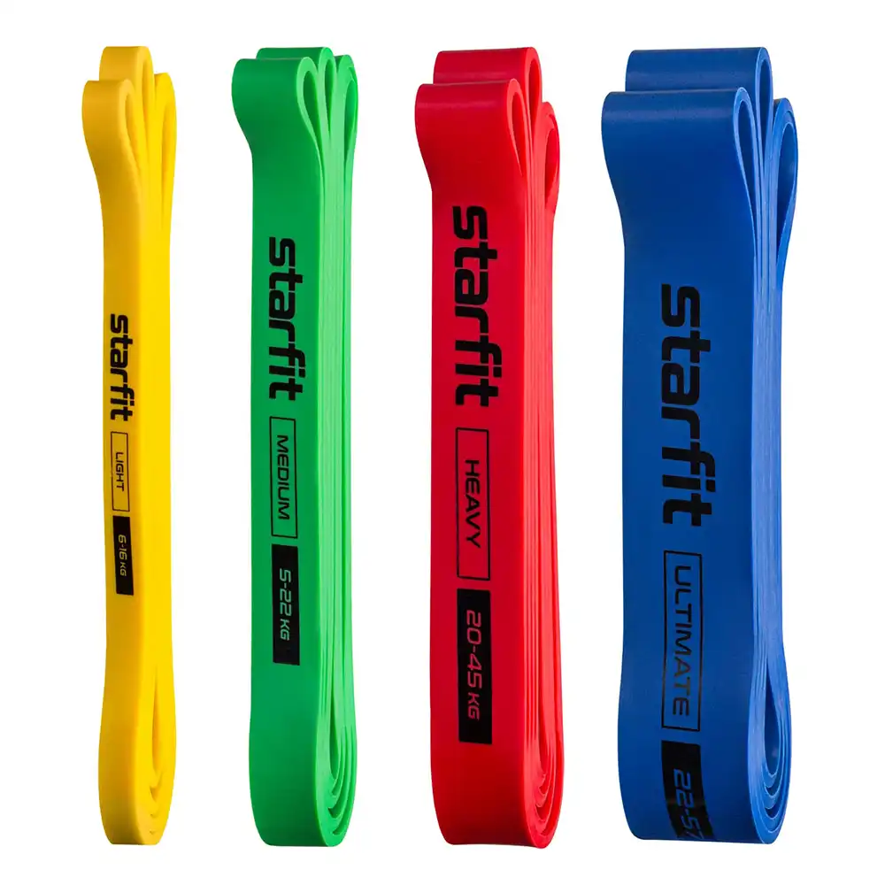 Эспандеры ленточные для кросс-тренинга STARFIT ES-804 – многофункциональные тренажеры для тела, необходимые спортсменам и любителям для комплексного развития мышц и связочно-сухожильного аппарата. Силовые ленты изготовлены из прочной резины. Долговечный и практичный материал прост в уходе и быстро принимает первоначальную форму после растяжения. Комплект состоит из 4 лент с различной степенью нагрузки. Light оптимален для новичков, Medium и Heavy – для любителей, Ultimate – для опытных спортсменов.