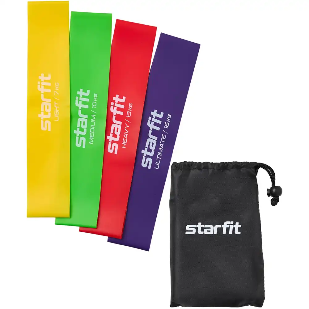 Входит 4 прочных латексных ленты, замкнутых в петлю. Каждая имеет разную степень нагрузки. Для укрепления ягодиц и бедер, а также развития различных групп мышц. В комплекте мешочек для хранения. Длина петли 25 см. Макс. растяжение 75 см