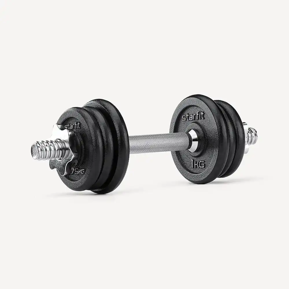 Гантель разборная DB-715 от STARFIT состоит из стального грифа с металлическим хватом и чугунных дисков разного веса. Общий вес легко уменьшить при необходимости, просто сняв диск. DB-715 не только поможет привести себя в форму, этот спортивный инвентарь для фитнеса дома или в зале станет отличным подарком любому спортсмену.