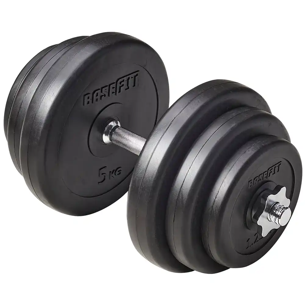 Гантель разборная пластиковая DB-720 состоит из стального грифа и пластиковых дисков разного веса, общий вес гантели 19,5 кг. Гантель удобно держать в руке. Нескользящая поверхность грифа на месте хвата повышает безопасность тренировок. Широкий шаг резьбы позволяет за считанные секунды поменять вес. Гриф комплектуется металлическими замками, которые надежно фиксируют диски на месте. Предназначена для занятий фитнесом и тяжелой атлетикой. Ее многофункциональность делает разборную гантель одним из самых удобных снарядов для домашнего и зального использования, ведь вес гантели можно изменять согласно требуемой нагрузке.