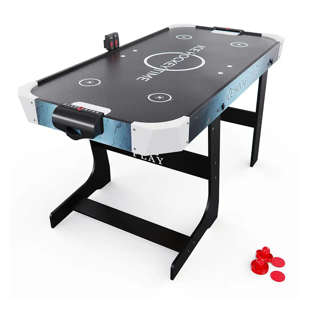 Встроенный вентилятор на 220В создает воздушную подушку, по которой шайба скользит практически без трения — именно так достигается эффект настоящего аэрохоккея. Электронный счетчик ведет учет забитых шайб, избавляя игроков от споров и добавляя соревнованию профессиональный дух. Размер стола — 135,5 х 67,6 х 81 см — позволяет разместить его даже в небольшой квартире, а прочные опорные ножки обеспечивают устойчивость во время динамичной игры.