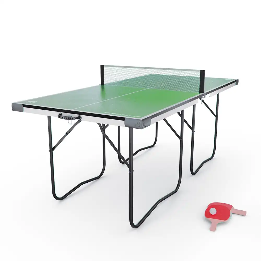 Складной. Есть ручка для переноски. Быстрая сборка без инструментов. Размер 182х86,5 см, для использования в помещении, на улице только в сухую погоду. Материал столешницы МДФ 12 мм. В наборе сетка, 2 ракетки и шарики